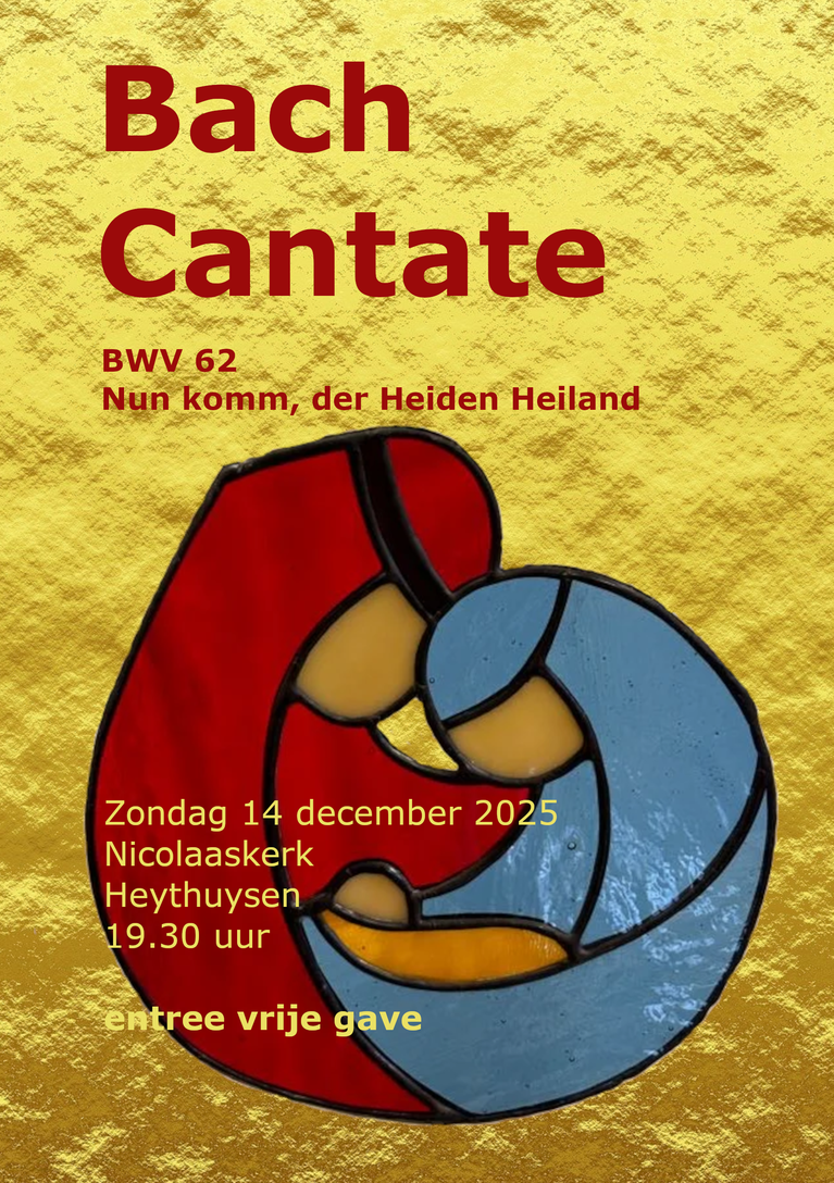 De entree is gratis maar een gulle vrije gave wordt zeer op prijs gesteld! De onkosten dienen immers bestreden te worden en bovendien help je zo mee om de Bach cantates in Heythuysen overeind te houden.